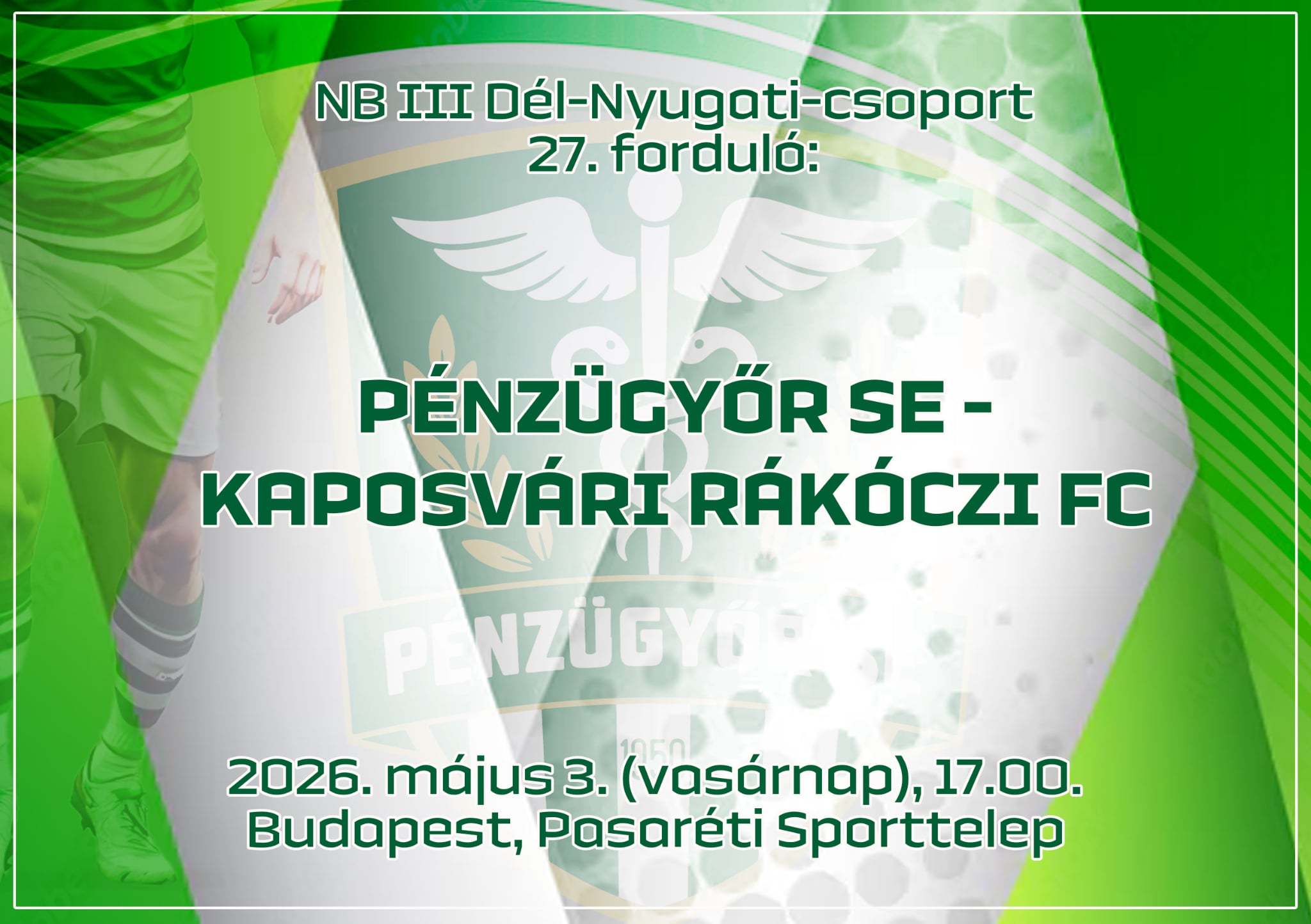 A szerzett pont nélkül záruló siófoki mérkőzése után vasárnap az NB III Dél-Nyugati-csoportjának 27. körében lép pályára felnőtt alakulatunk. 17 órától a Kaposvárt fogadjuk a Pasaréti Sporttelepen.