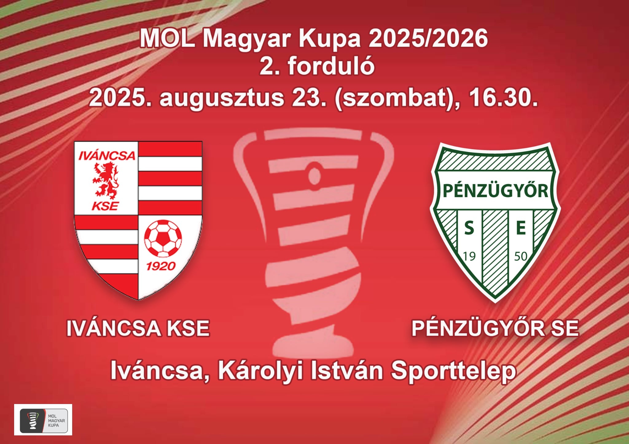 Újabb MOL Magyar Kupa-fellépéssel folytatódik az idény felnőtt csapatunk számára. Szombaton 16 óra 30 perces kezdéssel a velünk azonos mezőnyben, az NB III Dél-Nyugati-csoportjában szereplő Iváncsánál vendégeskedünk.