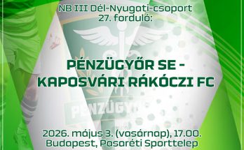 Pénzügyőr SE: Steer – Szabó L., Földi, Megyeri (Melovics, 85.), Molnár Milán (Vörös, 62.), Labát, Szűcs, Grabant (Csoma-László, 62.), Tóth K., Kokas, Molnár Márton (Bodnár, 62.). Vezetőedző: Csábi József.