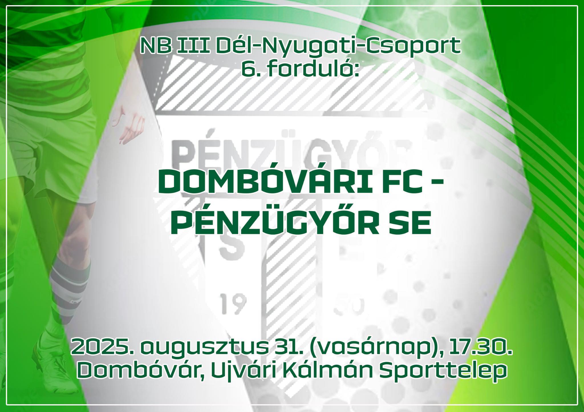 Az Érd elleni újabb fájó vereségét követően vasárnap 17.30-as kezdéssel vendégként javíthat férfi felnőtt labdarúgó együttesünk. A Dombóvár otthonában lesz jelenésünk az NB III Dél-Nyugati-csoportjának 6. fordulójában.