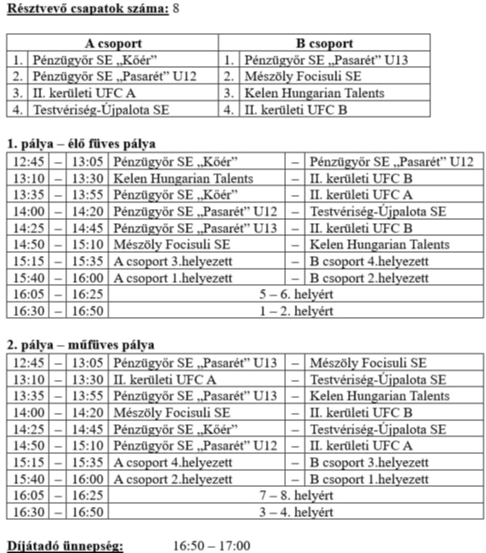8 együttes részvételével rendezünk utánpótlás kupát a Kőér utcában.