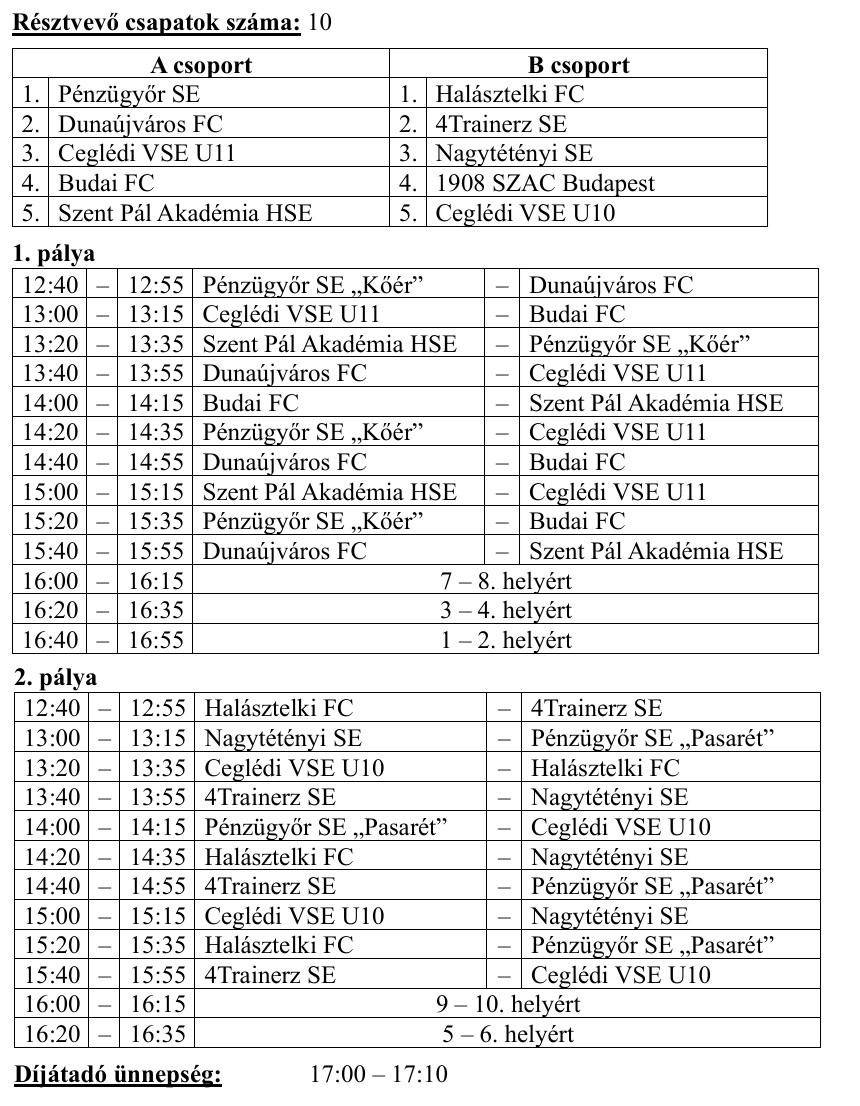10 csapat vesz részt a Kőér utcai Sporttelepen megrendezésre kerülő eseménynek.